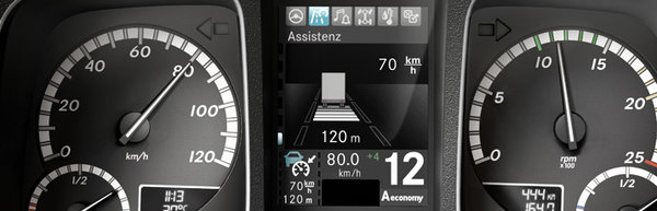 在新Actros上,奔驰为其配备了这套稳定性控制辅助系统,这套系统有助于主车和挂车在打滑或者转弯等危险情况下能保持车辆行驶稳定性。稳定性控制辅助系统能精确计算主车与挂车的行驶状况,通过调整车上的制动力分配以及发动机输出扭矩来维持车辆行驶平衡,帮助驾驶员处理危险情况,功能跟经常说的ESP系统一样。有了这套强大的稳定控制辅助系统,就意味着在紧急情况下,驾驶员只需要专注于控制方向以及制动,其余维持稳定的工作就交给车辆执行。
