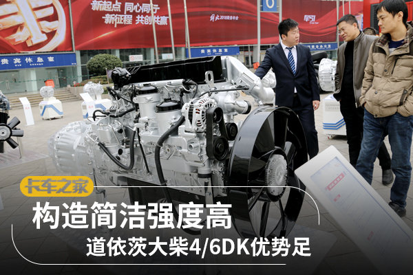 道依茨一汽大柴4DK系列发动机是道依茨一汽大柴研发的全新中卡发动机,该发动机技术源自沃尔沃D5动力,经过了欧洲市场的充分验证,虽然是5升发动机,但是动力等同于国内品牌的6升机;而6DK是道依茨一汽大柴研发的全新重卡发动机,跟4DK一样,6DK源自沃尔沃D7动力,性能堪比国内其他品牌的8升发动机,性能相当优异,品质非常稳定。