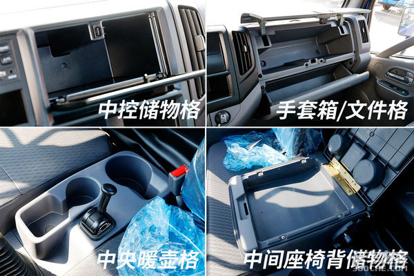 驾驶室储物空间算是丰富,而且设计很合理,尽可能提升了空间利用率,最出色的则是手套箱下方的储物格,既可以储存一些文件和简单随车工具,又没有牺牲过多的腿部空间。