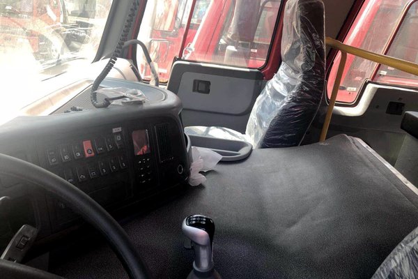 乘员室改制为双排,设前后两排座位,可乘座6人(包括驾驶员1人)。原车仪表板处设置消防操纵仪表板及警灯控制盒;后排座位靠背设置4具空气呼吸器专用靠背及固定夹具。驾驶室可以翻转,便于发动机的维修。它采用全功率夹心式取力器,可以实现车辆边行走边打水。