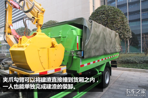 装修建渣在过于一般都是通过小型自卸车或者轻型微货车来搬运,在装卸方面需要花费不少的人力成本以及时间成本。而庆铃汽车推出的这款装修垃圾运输车可以极大程度上的减少其他成本的投入,即便是一个人也能够单独的完成建渣的装修,装货就像夹菜一样简单。(文/图 苟祖胜)