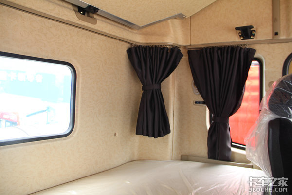 车辆带侧窗、后窗,可以保证驾驶室内光线的充足,车辆更加温馨,驾驶员不会感到压抑。同时车内带有全景窗帘,驾驶员夜晚休息时可以拉上,可以营造更好的休息环境。