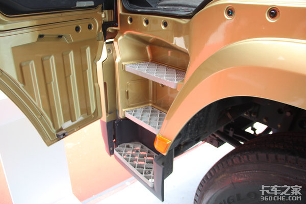 驾驶室三级蹬车踏板,表面带锯齿增加摩擦力上下车更加安全,中间为镂空设计,可以有效的减少驾驶员脚上的泥土带入车内。另外,铝合金踏板具有更好抗腐蚀性,重量也较轻。