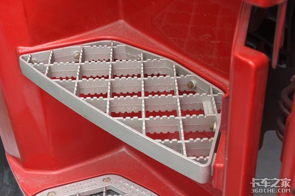 驾驶室三级镂空脚踏板的设计,可以有效解决雨水以及泥沙沉积问题,而且锯齿设计增加了摩擦力,保证了驾驶员上下车辆的安全。