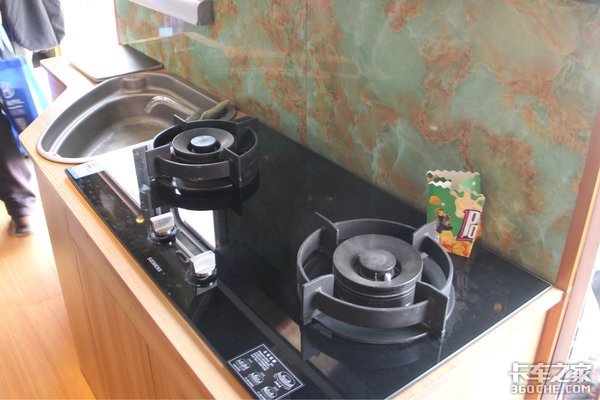 灶台上方还安装了油烟机,做饭的话油烟也不会对房车内部造成太大影响。而且这些厨具和电器大都是德国西门子的,可以说是比较豪华了。