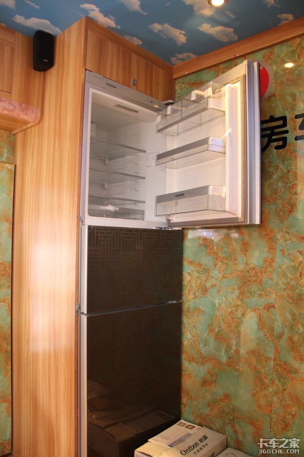 三开门的大冰箱,可以储备足够多的食物和饮品。长期旅行的话也能有吃有喝,不用随时急着补充资源,很惬意。