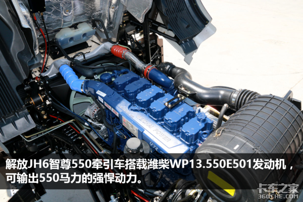 ● 底盘点评:解放JH6智尊550牵引车采用了目前国内比较少见的550马力潍柴发动机,将动力展现的淋漓尽致。整个动力链的配置基本上都是跟欧洲重卡相似的,羡慕欧洲卡车的动力链吗?解放JH6智尊550就可以满足你的需求。