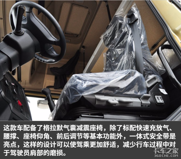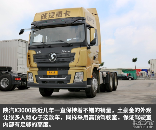 陕汽X3000最近几年一直保持着不错的销量,土豪金的外观让很多人倾心于这款车,同样采用高顶驾驶室,保证驾驶室内部有足够的高度。四气囊悬挂可以减少来自地面的颠簸,保证驾驶室的舒适性,这一配置目前在国产重卡上已经成为标配。