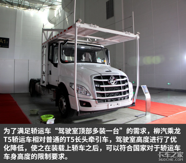东风柳汽乘龙T5轿运车是柳汽针对轿运车市场推出的又一力作,相比普通半挂轿运车,乘龙T5长头轿运车可以多装一台,单车每年可以多获得10万的纯利润。并且在安全性、舒适性、可靠性、省油性、高效性等方面都进行了升级,使得整车在运行过程中有更优异的表现,对于轿运车用户来说,乘龙T5长头轿运车绝对不失为一个好选择。(文/图 王雪洁)