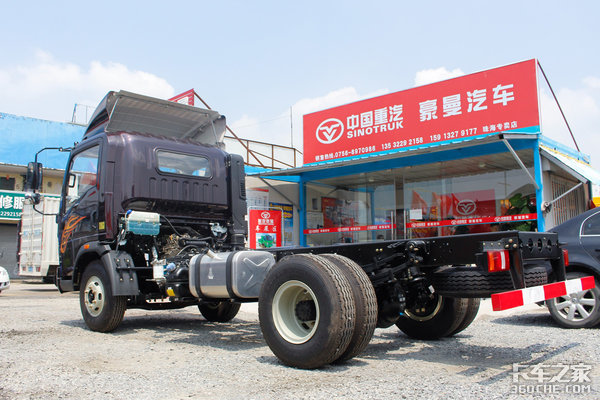那如果是重载运输,比如粮食蔬菜、酒水饮料、五金建材等货物,建议你选择豪曼的重载版车型。实拍的这台底盘车便是豪曼的重载版轻卡,它采用216mm幅高的车架,搭载玉柴160马力发动机,匹配重汽十挡变速箱,可谓相当强悍,详细配置请看下面的图示解释。