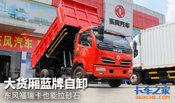 【卡车之家 原创】东风福瑞卡“千钧王”蓝牌轻卡,动力匹配和底盘承载力均匹配了重载运输的需求。其载货车和平板自卸车是我们最常见的,拉一般物料能力是绰绰有余的。而它装上厚钢板厢体后,还能用于运输砂石及渣土。