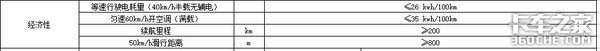 经济性参数主要是看能耗,譬如这个参数里面的“匀速60km/h开空调(满载)”,能耗≤35kWh/100km,意味这如果该车的电池容量只有70kWh的话,那么它续航里程可能只有200公里。