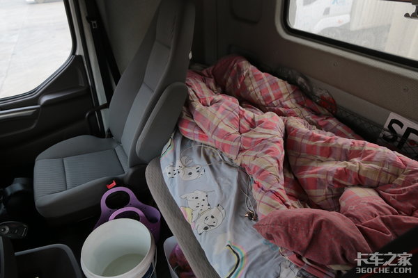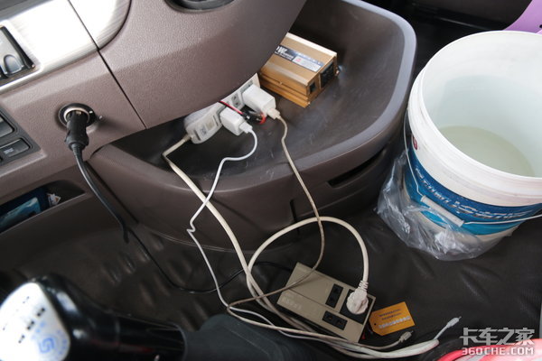好在乘龙H7的驾驶室比较宽敞,低地板驾驶室行动起来也比较方便。陈师傅在车内装上了个逆变器,用来给手机充电;装了个蓝牙接收器,开车的时候听歌打电话用一用。车里看起来虽然乱了点——“宅男的家”哪有不乱的——但看起来还是挺有生活气息的。