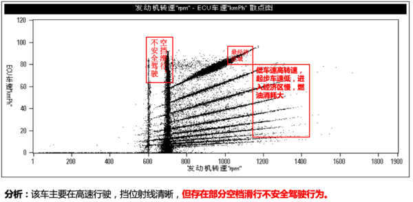 根据乘龙汽车后台统计的数据,陈师傅开的这台车,用经济车速(79-87km/h)跑的里程占总里程的20.2%;经济转速(1000-1100rpm)使用频次占比大约为68.58%。可以说是还有一定的上升空间。事实上,他的对发车这两个占比都比他高,油耗确实也比陈师傅低。