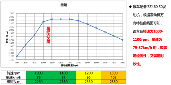 而对于这款ISZ460发动机来说,1000-1400rpm是它的经济转速区间。也就是说,车速79-111km/h是这款车最省油的状态。而陈师傅在高速上都是跑80km/h——经济车速的最低速,既能保证公司要求的时效,也能减小风阻,还是经济车速,所以整体的油耗会很低。