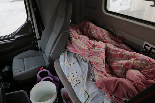 所以,这台车自然就成了他的家——没有人愿意把车当成家,但干这一行的,有几个能避免这种命运。每天把货送到地方,等卸完货,把车挪到装货站台,就赶紧吃顿饭,上车睡觉,等待凌晨货装满之后直接发车走人——如果说车是家的话,那么陈师傅也可以说是一名“宅男”了。