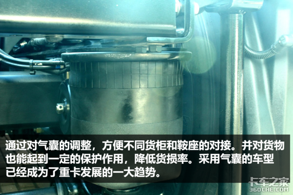 通过对气囊的调整,方便不同货柜和鞍座的对接。并对货物也能起到一定的保护作用,降低货损率。以及在轻量化趋势下采用气囊悬挂已经成为了重卡发展的一大趋势。