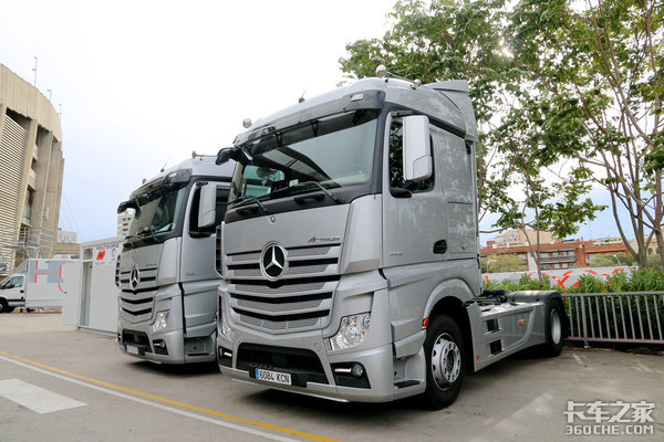 来卡车之家App【卡车之家 原创】奔驰New Actros从欧洲市场开始销售距今也数年有余,说它是一款年轻的老车也不为过。近日,同事去西班牙巴塞罗那出差,偶遇了两台奔驰New Actros,那咱们就来一起看看这两台日常使用的奔驰New Actros。