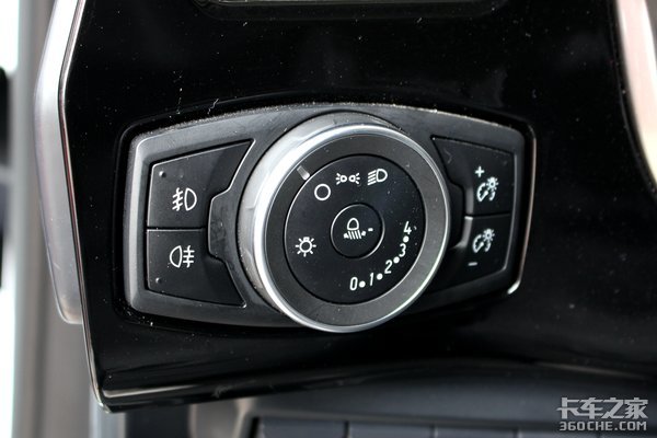 灯光控制按键设在了方向盘左下方,和欧洲车的风格较为一致,亦是目前许多国产高端新车的常见设计方法。中间旋钮是远近光、示廓、灯光高度调节等;左侧按键是前后雾灯;右侧按键是仪表盘亮度调节。
