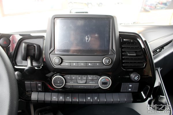 功能区的布局很规整,中控大屏除了常规的娱乐功能外,还标配了“江铃智行”车联网系统,且可选装货车导航;自动空调全系标配;最底一部分采用类似钢琴式按钮设计,有车道偏移、ASR、SOS/发动机制动、驾驶室灯光以及一些预留按键,一字排开的设计,不容易让人感到凌乱。另外,右方的点烟器下方是电动车窗的控制开关。
