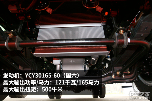 该车搭载玉柴YCY30165-60发动机,最大输出功率121千瓦,最大输出马力165马力,最大输出扭矩500牛米,满足国六排放标准。目前国六车型还未正式上市,后续可能还有些许调校,具体数值以量产车为准。
