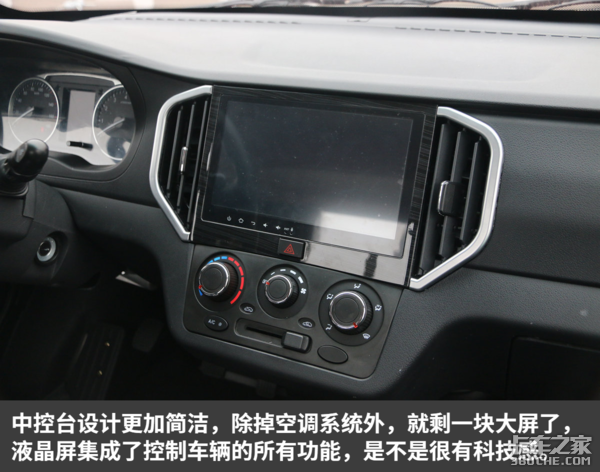 内饰的设计非常简洁,多项功能集中在了中控的9寸大屏上,并且还有人机语音交互系统,可语音控制多媒体使用,满满的科技感,你能想象这些都是安装在了一款微卡上面吗?