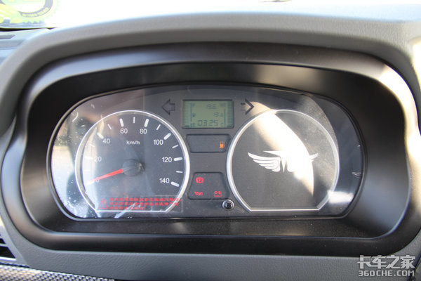 仪表盘由一个指针式仪表盘和一个液晶显示屏仪表盘等组成,涵盖了水温、油量、车速等信息,常见的右边转速表的位置设计了唐骏的小天使LOGO。