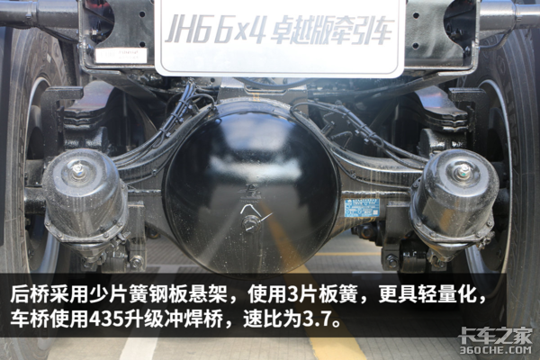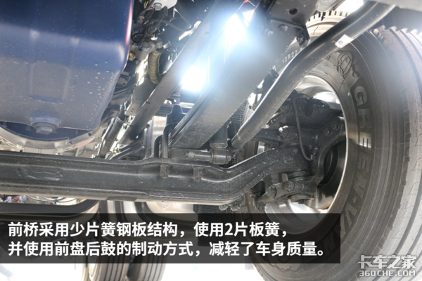新款JH6凸地板车型将原来前3后4的板簧结构升级为了前2后3板簧结构,实现板簧轻量化,使得单车降重58KG。