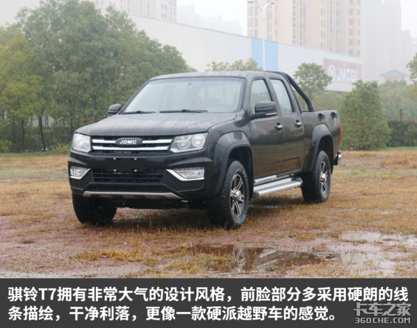 对于这类宜商宜家的皮卡车型来说,外观往往是决定用户是否继续了解这款车的一个重要因素,在外观设计方面,骐铃T7拥有非常大气的设计风格,前脸部分多采用硬朗的线条描绘,干净利落,更像一款硬派越野车的感觉。
