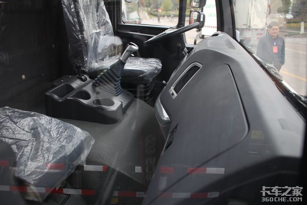 由于展车属于试制车,室内可能会有改动,相关介绍仅供参考。采用双人座设计,其中主驾驶位采用气囊减震座椅。中控台仰角比一般轻卡要大,理论上比较方便驾驶员操作功能。另外,虽然没有驾驶室尺寸数据,但目测要比一般轻卡要大。