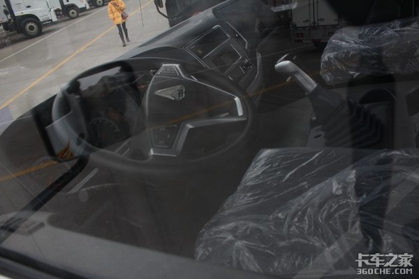车头和斯太尔有许多的相似之处,斜杆式的进气格栅、黑色的保险杠等等,车窗也采用了经典的两片玻璃设计,整体看起来特别有存在感。