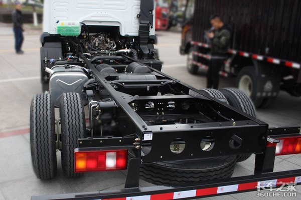 除了发动机和变速箱以外,新车其他底盘配置也足够让人过目不忘。宽体车架尺寸216mm,匹配1080后桥(速比3.727),8.25R16轮胎,承载性能表现不俗,在轻卡当中算是比较罕见。