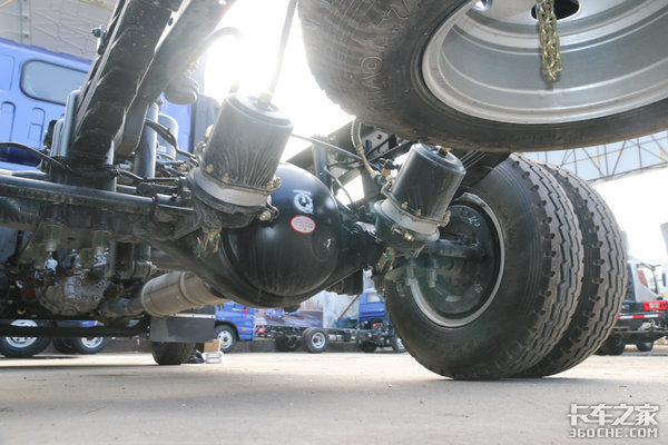 但与主打重载运输的奥铃捷运不同的是,奥铃CTS宽轮距车型依然保持标准物流型车辆的底盘规格,自重相对较轻,从车桥、车架、板簧、轮胎可以分辨出来。