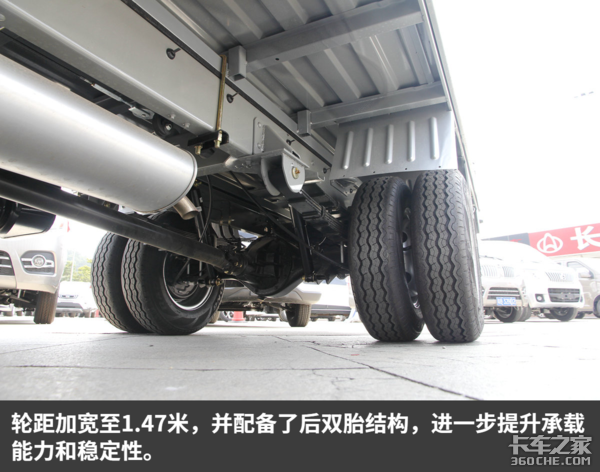 长安神骐T20L的底盘主打高承载性,特地采用了双层直通大梁,整体冲压成型整体受力,具备了更好的承载性能,同时前后桥采用板簧悬架,后轮更是采用了尺寸为185/R14LT的后双胎结构,进一步强化了承载性能。