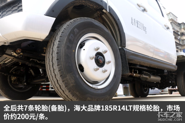 传统微卡大部分用的是面包车一样的底盘,而T50/T52小卡为了保证承载力、不仅后轮采用双胎,底盘用的也是轻卡类似底盘。后双轮无疑比单胎承载力更强,稳定性也更好,但有个问题也得考虑,以后更换轮胎的成本从四条变成6条,当然了,鱼和熊掌不可兼顾对吧?此外,该车配备了70L的油箱,能够满足中短途运输需求。