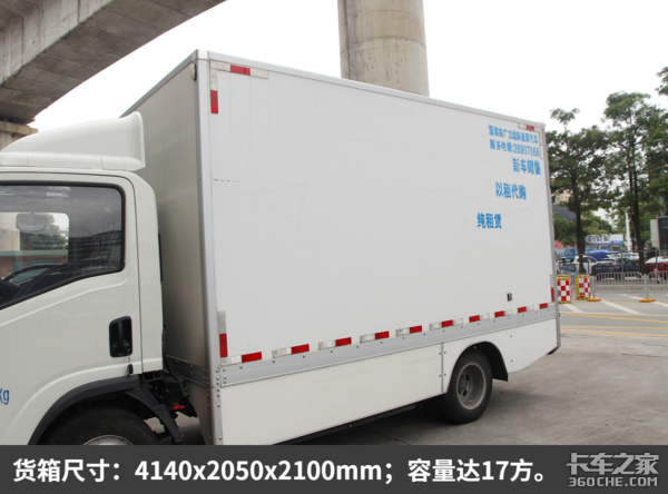 一个不足的地方是,货箱的容积虽然大,达到了18方,但为了减轻自重采用了复合材料打造货箱,比较单薄,并不太适宜承载重量非常集中的货物,但对于快递运输等轻泡货来说,18方货箱还是可以满足的。