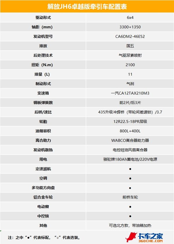 关于舒适性:除了以上介绍到的舒适性配置,解放JH6卓越版还有原车逆变器,可以提供220V的电源,在车上使用大功率电器也是没有问题的。JH6卓越版还提供北方版选装,具有燃油加热等功能。