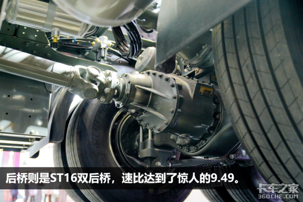 我们平常的柴油车要是这么大的后桥速比,那车速得多慢啊,不过这是一款针对港口集装箱场内转运工况的牵引车,对于车速的要求并不是很高,再加上电动车驱动电机功率高的特性,故而选择大速比驱动桥。
