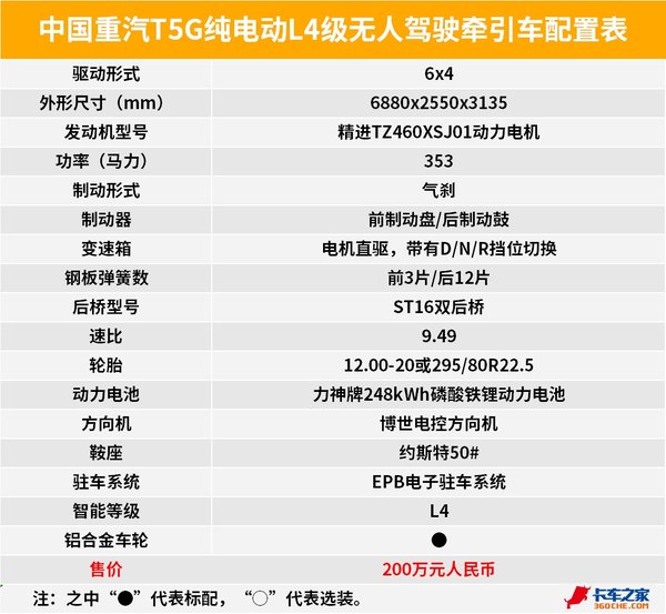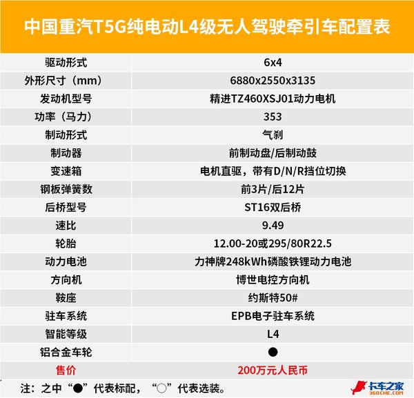 无论这些自动驾驶智能化程度高不高,但是更加“聪明”的卡车的确是已经来到我们的身边。今天,跟大家一起赏析一款由中国重汽制造的HOWO T5G纯电动L4级自动驾驶牵引车,这款车目前的报价是200万元。