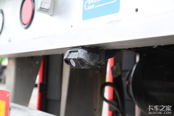 同时上汽红岩还给这款C500装上了360度环绕影像,车头前方有一个摄像头,在两侧后视镜下面各有两个摄像头,配上罐车后方的摄像头,可以实现360度无死角环绕影像。据上汽红岩工程师介绍,后期有计划在360度环绕影像中加入障碍物提醒功能,如果一旦车辆周围出现障碍物或者是行人,系统将会提醒驾驶员,以防止出现事故。