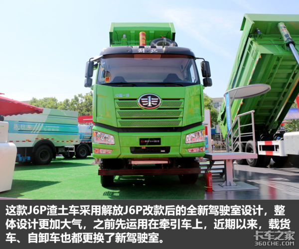● 外观点评:相比较公路物流车的新J6P,这款渣土车要更加挺拔一些,因为将整个底盘的离地间隙调高了一些。除此之外,一些相比老款J6P的细节调整,也让这款车看起来更加协调和大气。