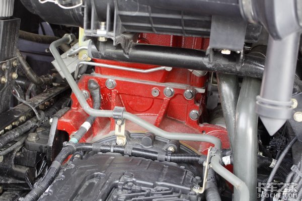 除此之外,变速箱侧面还并联了福伊特液力缓速器,在西南地区等长下坡路况下,液力缓速器可实现持续无磨损辅助制动,可有效取代传统淋水器,行车更安全,载货量也能带来一定程度的提升。
