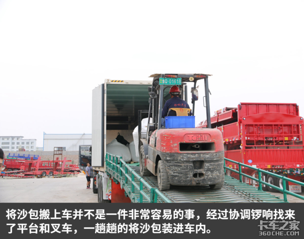 一个多小时后,我们一共在集装箱内装了三十一袋沙包,大约为三十一吨多,但是具体多重还是要去地磅上称一下,才能更直观的看到一个数据。