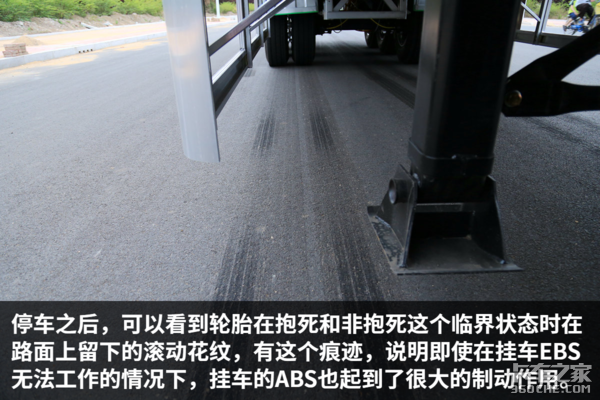 通过观察细节我们可以看出,在急刹车时,主车EBS可以做到迅速对车轮进行制动,并能够确保车辆在最短的距离内达到最强的制动效果。
