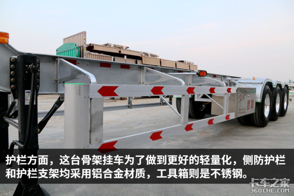 来卡车之家App【卡车之家 原创】说到骨架挂车,我们总能把它和沿海港口的集装箱运输联系在一起,那些挂车主要跑短途转运,主打性价比,所以配置方面也很基础,就是非常普通的挂车。
