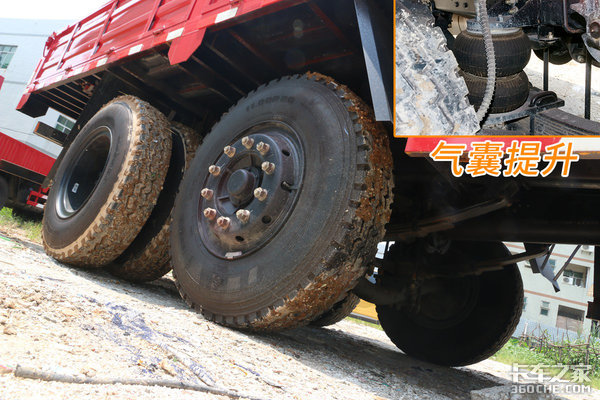 8x2昊龙的第三桥可气囊提升,并采用单胎设计。气囊桥可以减少轮胎磨损,是目前快递、快运车型的常见配置;单胎设计则利于产品的轻量化,提升盈利能力。从公告上看,这款8x2昊龙的自重最低可做到10.81吨,总重31吨和8x4载货车相同,但却有更好的载重能力(载重量达19.995吨,比常规8x4车型多装1吨左右)。