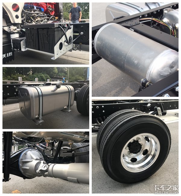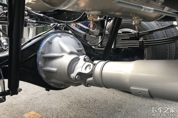 匹配5吨级后桥,后桥速比为4.875(还可选4.375),桥壳采用铝合金材质,这在轻卡里还是比较少见的,相比一般采用的铸铁材质,质量更轻,强度更高;前7后5+5片的板簧设计,让车辆承载性进一步得到保证。