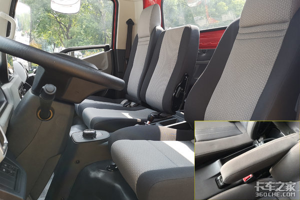 座椅采用针织面料,吸湿透气性强,并且主驾位置设计有扶手,方便司机休息时使用。