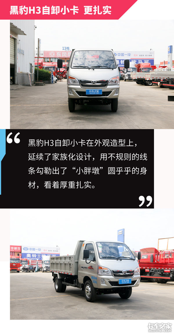 【卡车之家 原创】对于不少乡镇地区或需进出地下停车场的小型工程建设来说,由于路面较窄、高度限制等多种原因,导致中、重型自卸车无法进入。因此,针对这部分细分市场的运输,不少车企推出了小自卸车型,黑豹H3自卸小卡正是其中之一。