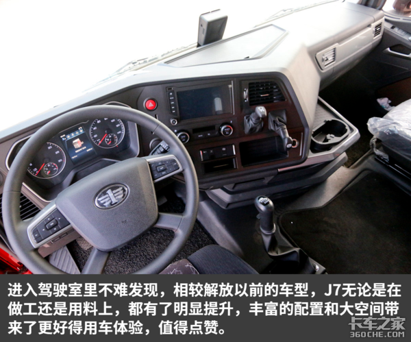 解放J7驾驶室内基本没有塑料感,非常有档次,内饰用料与做工均达到了超高的水准,只能说一分钱一分货。